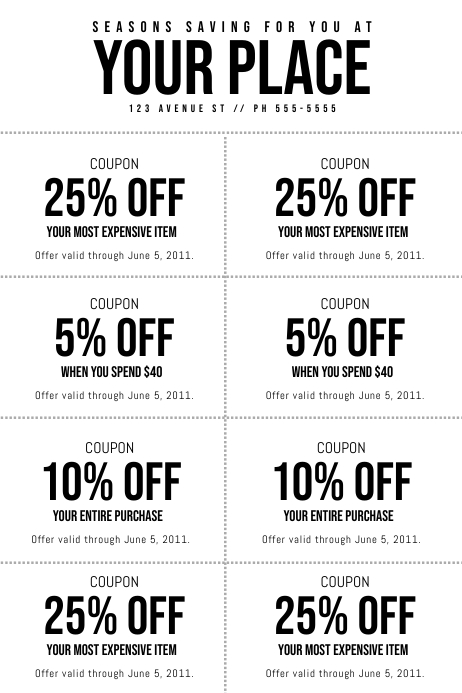 This editable and printable ticket is distributed via mail, magazines, and newspapers; however, e-coupons are now a trend since the internet can reach a larger number of. Adobe Spark's Inspiration Gallery features an abundance of professionally designed templates to get your creative gears spinning as you design your own gift If you want to create gift certificates that are unique to your business, there are many ways you can personalize each free gift certificate template. Customizable Coupon flyers, posters, social media graphics and videos.